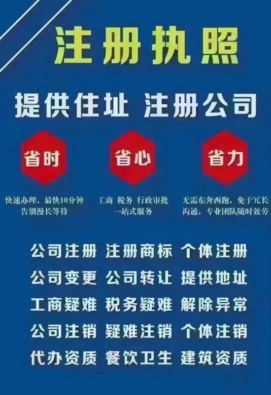 工商注冊,注銷,代理記賬,工商稅務疑難,資質代辦,提供地址